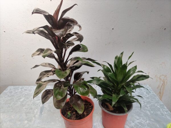 Planta ornamental de follaje atractivo con hojas verdes brillantes y matices púrpura, acompañadas de delicadas manchas blancas que aportan un toque decorativo único. Su porte compacto y elegante la convierte en una excelente opción para interiores, oficinas o espacios con buena iluminación indirecta. Fácil de mantener y con un crecimiento saludable, es ideal para quienes buscan belleza natural y frescura en su hogar.